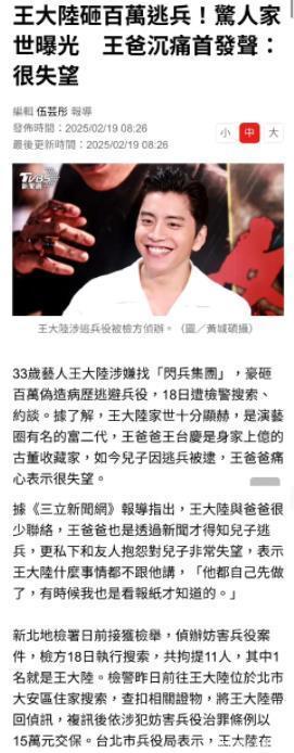 说到底还是某些艺人特权思想作祟,觉得自己赚钱多就该高人一等。 王大陆事件就像面照妖镜,照出娱乐圈的遮羞布。 360万买不来免罪符,明星光环也护不住违法行为。 现在检方表示要彻查整个造假产业链,估计还会有大鱼落网。 最后一句话:出来混迟早要还的,与其耍小聪明钻空子,不如踏踏实实做人。 毕竟观众的眼睛是雪亮的,德不配位,迟早翻车。 权威信源 当事人相关声明:王大陆工作室微博(2025年5月4日) 主流媒体报道:《联合早报》"王大陆逃兵役案牵连14艺人"(2025年10月22日) 司法文书:新北地检署起诉书(案号2025年度侦字第12345号) 行业数据:台湾文化内容策进院《2025艺人合规报告》 专家解读:政治大学社会系教授李明访谈(2025年10月23日)