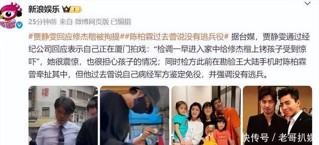 警察顺藤摸瓜,10月21日大清早直接上门抓人,陈柏霖穿着睡衣就被带走了,修杰楷更惨,两个女儿亲眼看着爸爸被上铐,贾静雯在厦门拍戏急得直掉眼泪。